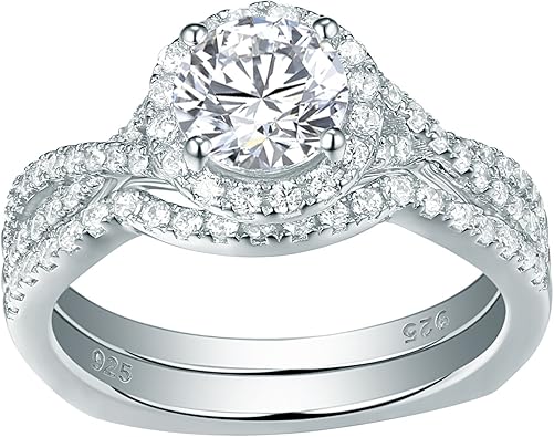 Bonlavie 3 45ct 925 Sterling Silver Cubic Zirconia Halo Anniversary Wedding Band Engagement Ring Bridal Set