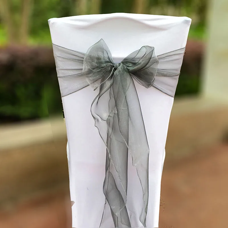 Us 40 96 21 Off 100pieces Dark Silver Gray Organza Bands Sash Wedding Chair Sashes Bow Banquet Wedding Party Decoration In Sashes From Home Garden